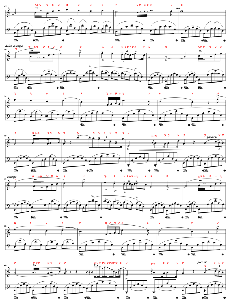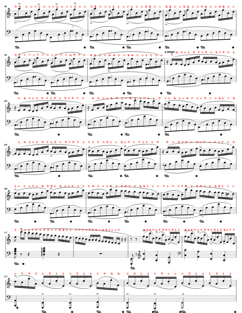 - 音符を読むのが苦手な人のために、ふりがなドレミ譜表を振っています