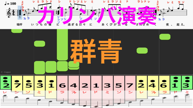 群青 カリンバ演奏 YOASOBI カリンバ楽譜 歌詞 ドレミ音符読み方ふりがな譜表付き 楽譜画像 楽器練習用 カリンバ/ピアノ/オカリナ/サックス/トランペット/フルート/クラリネット演奏/カラオケに最適!楽譜動画音声あり